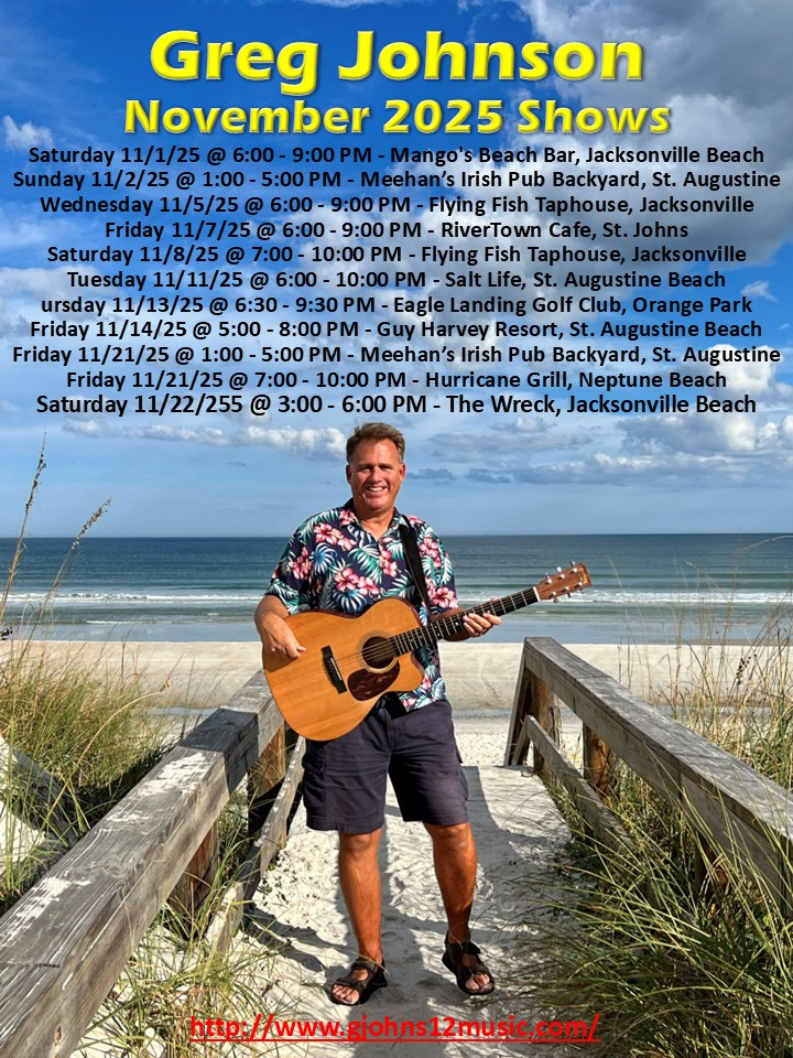 Friday 1/10/25 @ 6:00 - 9:00 PM - Santiago's at the Guy Harvey Resort, St. Augustine Beach